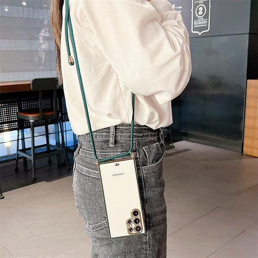 6D Plating Necklace Lanyard Strap Cord Phone Case For Samsung S22 Series