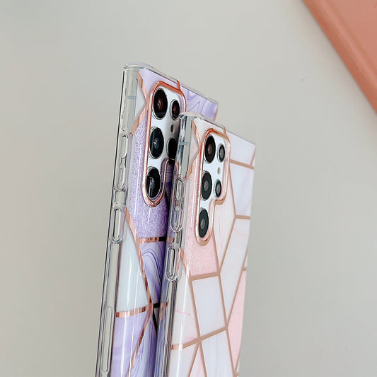Electroplated Line Glitter Marble Case For Samsung S22 Series